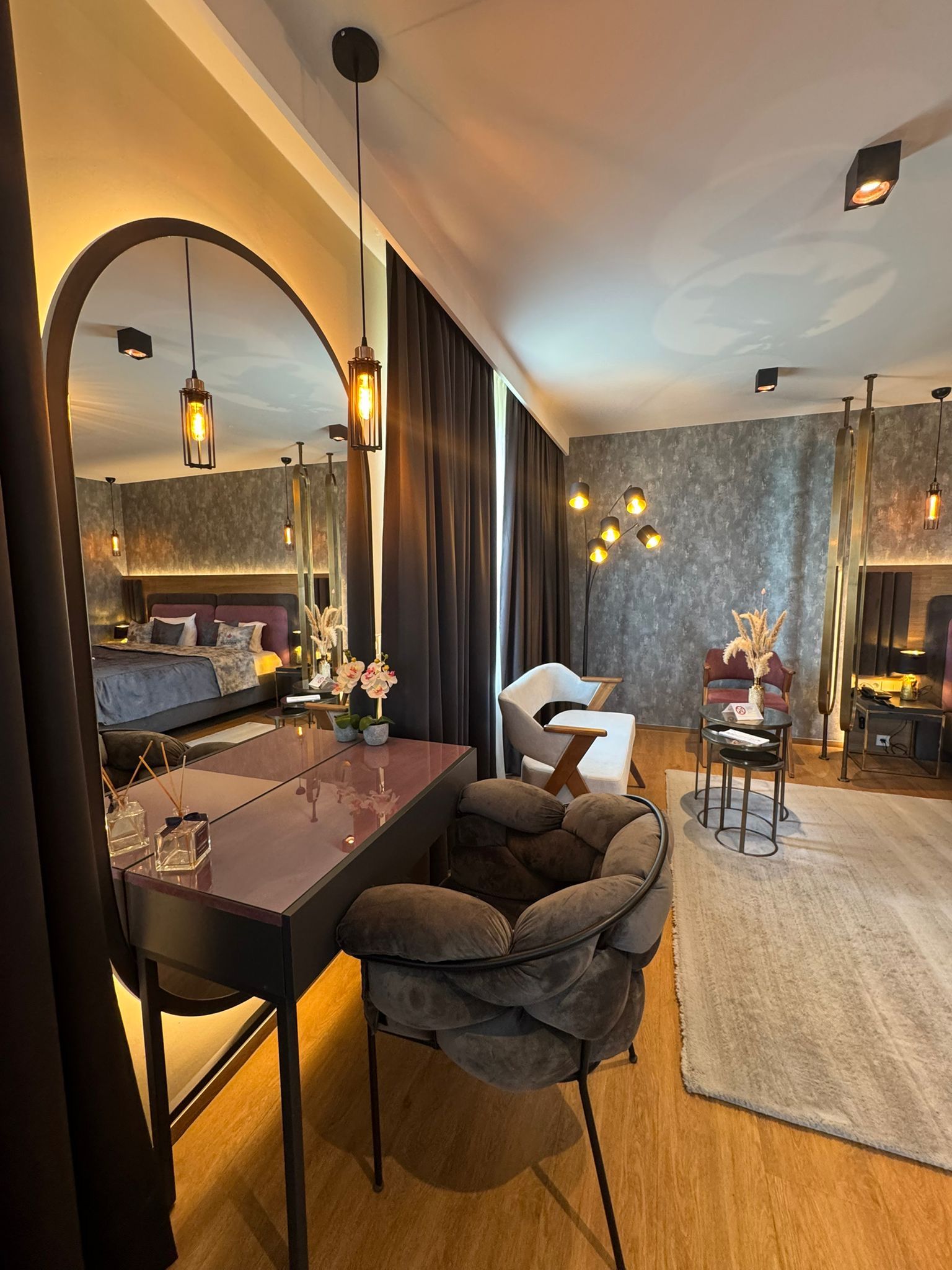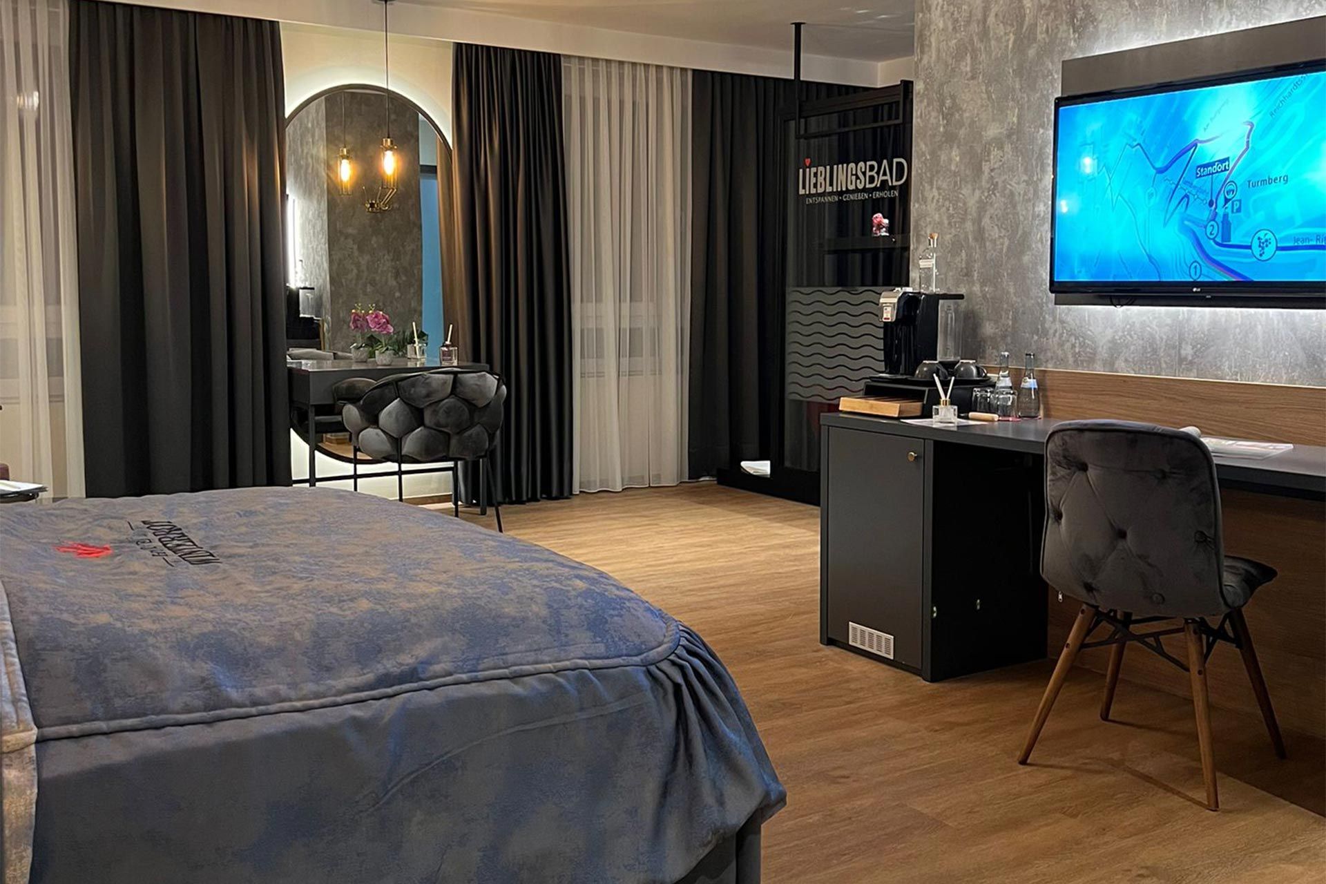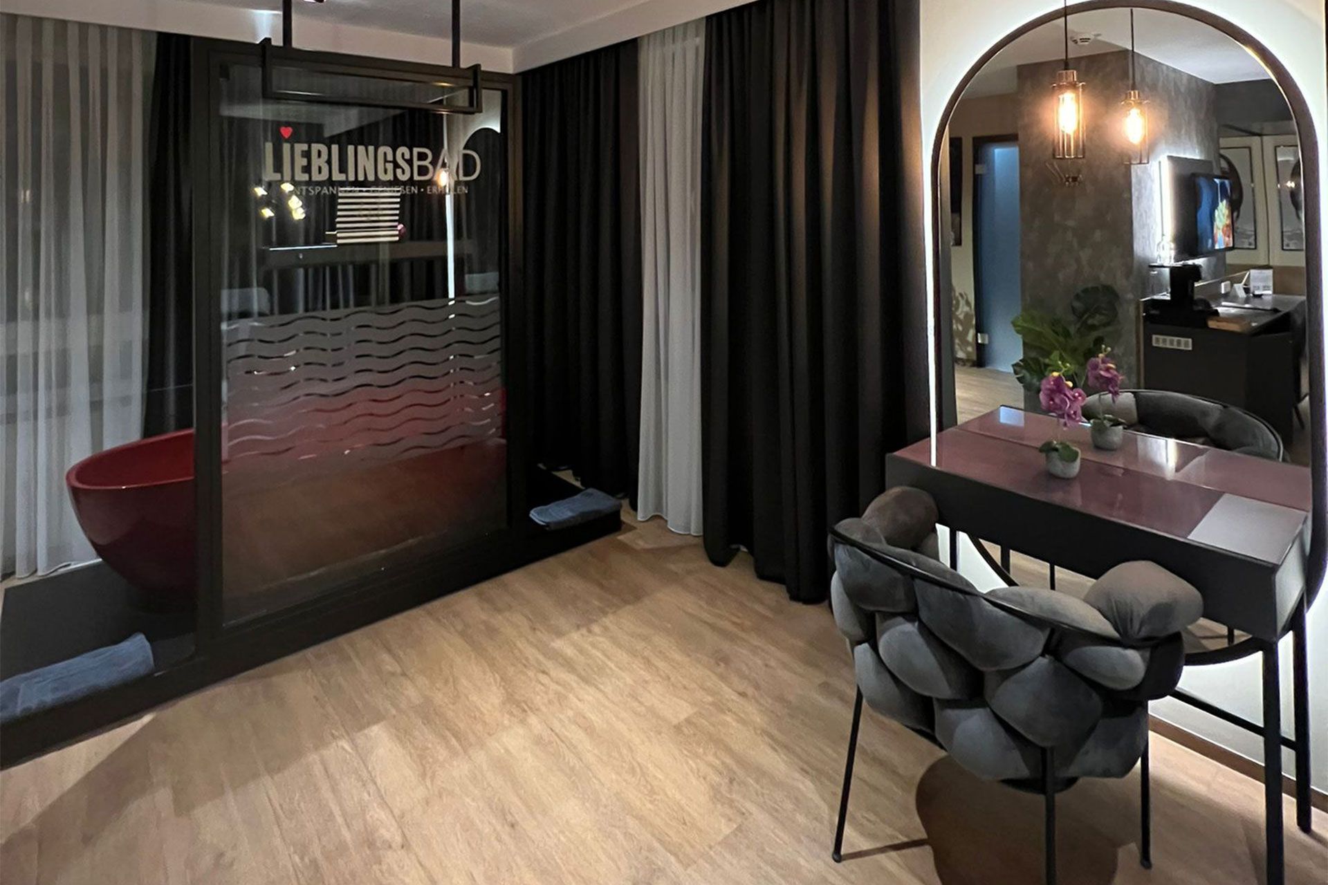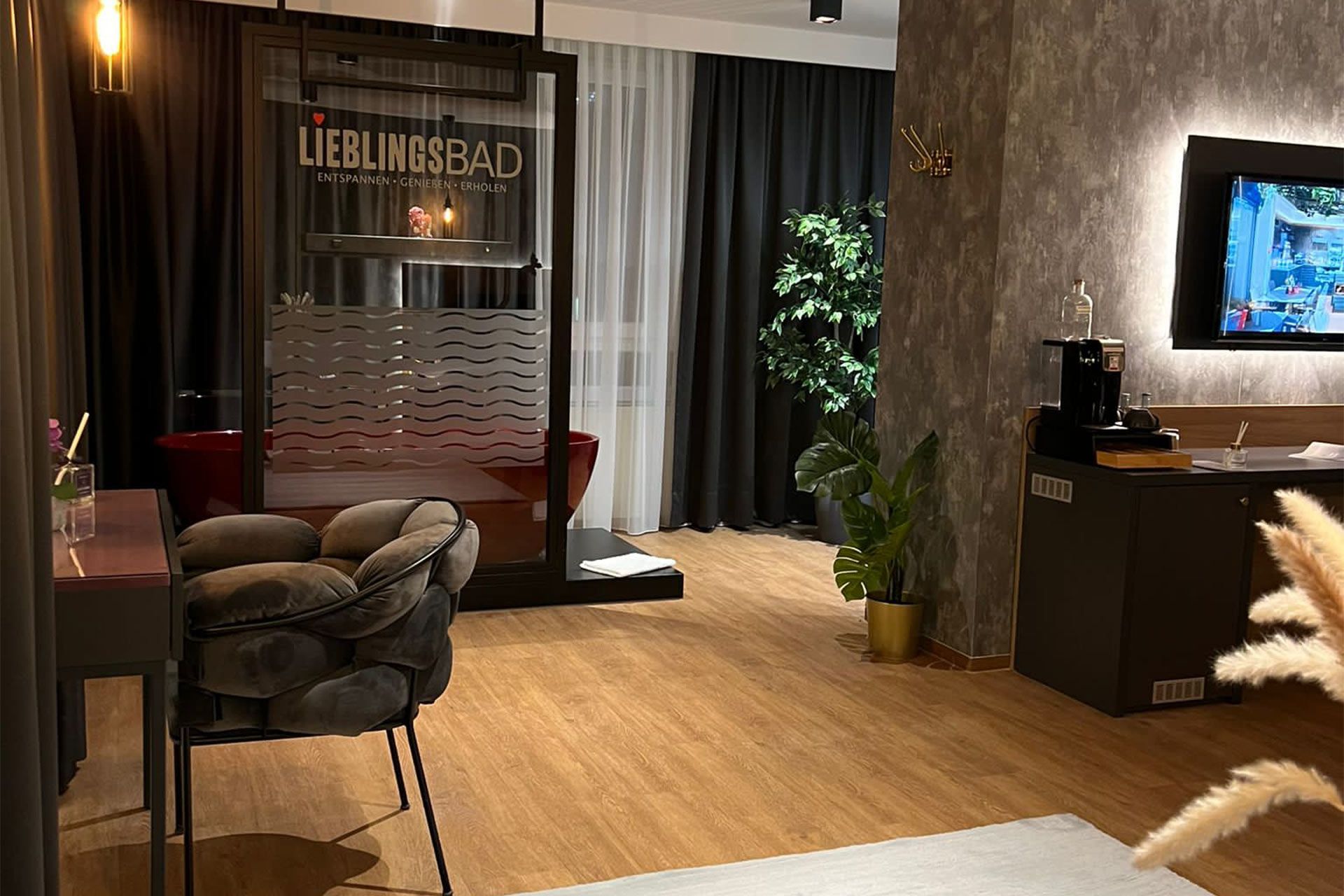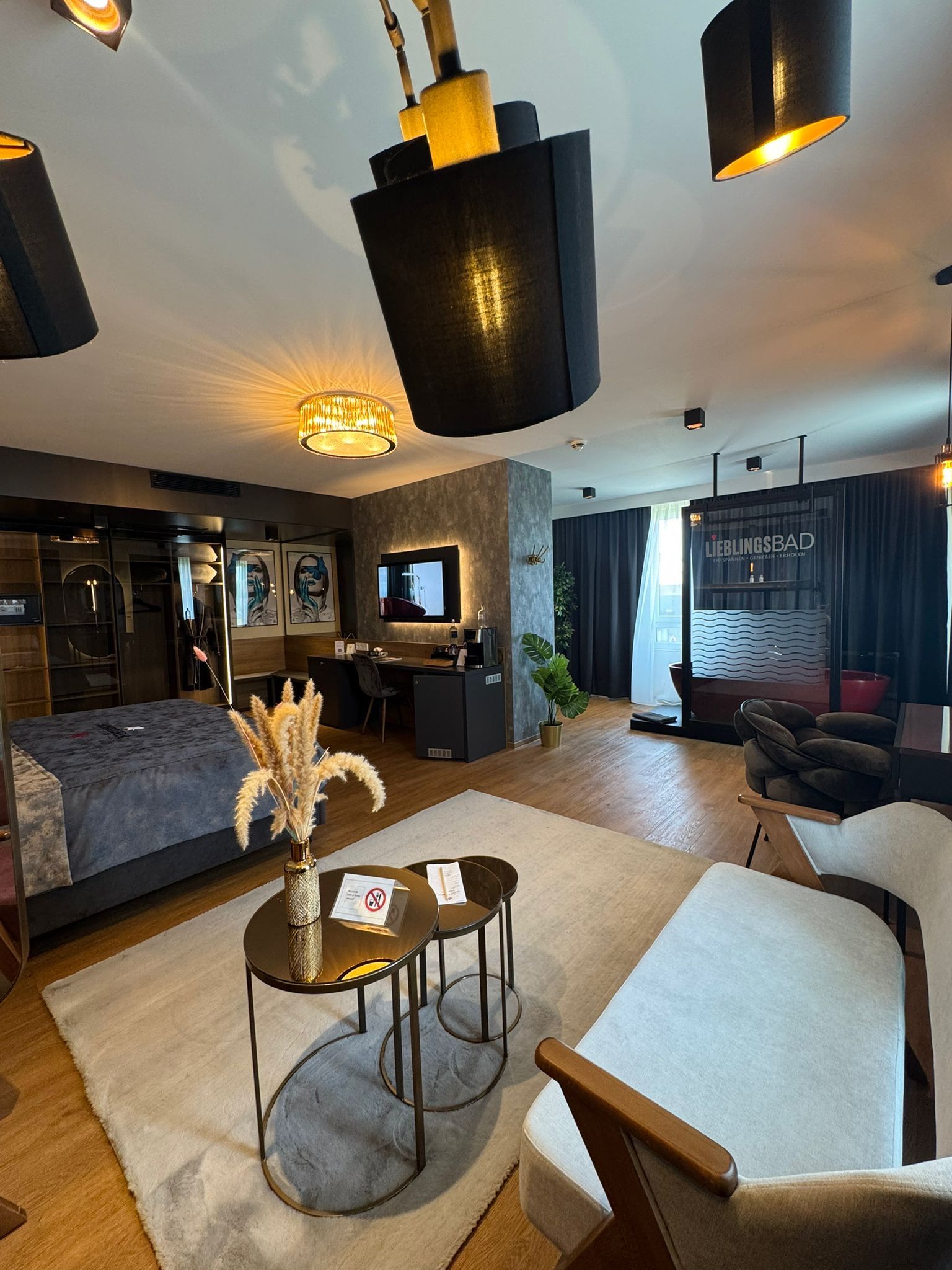 Unsere VIP Platin Zimmer sind das Aushängeschild des Hauses: 45 m² pure Eleganz, ausgesuchte Materialien, ein Ambiente wie im Designmagazin. Erleben Sie einen Aufenthalt, der durchdacht, ruhig und luxuriös zugleich ist. Die Kombination aus freistehender Badewanne, großzügigem Bad, Kingsize-Bett und separatem Wohnbereich schafft ein echtes Suite-Gefühl.