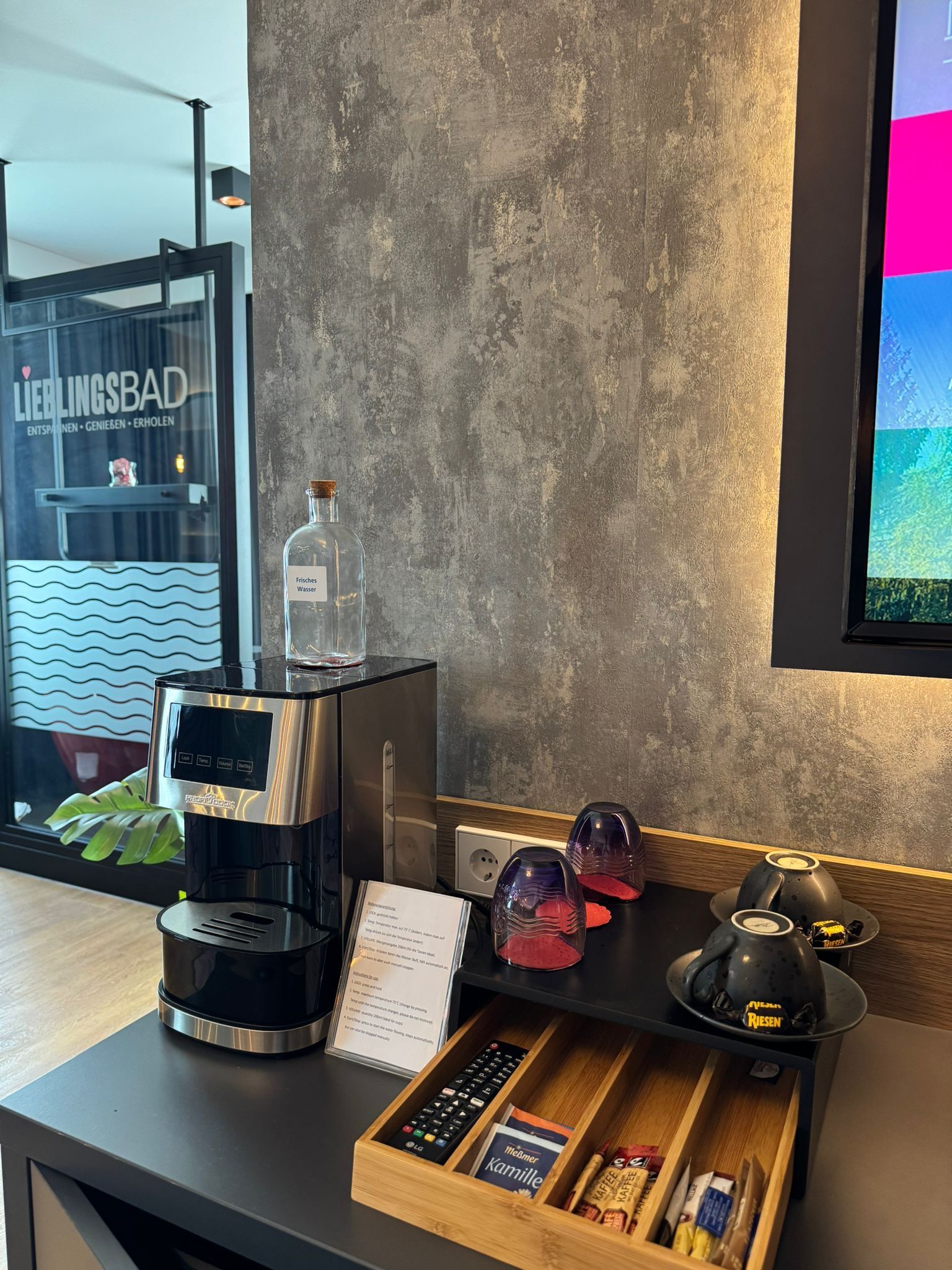 Im stilvollen Badezimmer erwarten Sie eine großzügige Regendusche sowie ausgewählte vegane Bio-Pflegeprodukte – für ein besonderes Wohlfühlerlebnis. Die VIP Kategorie vereint edles Design, gehobenen Komfort und durchdachte Funktionalität zu einem Aufenthalt der Extraklasse.