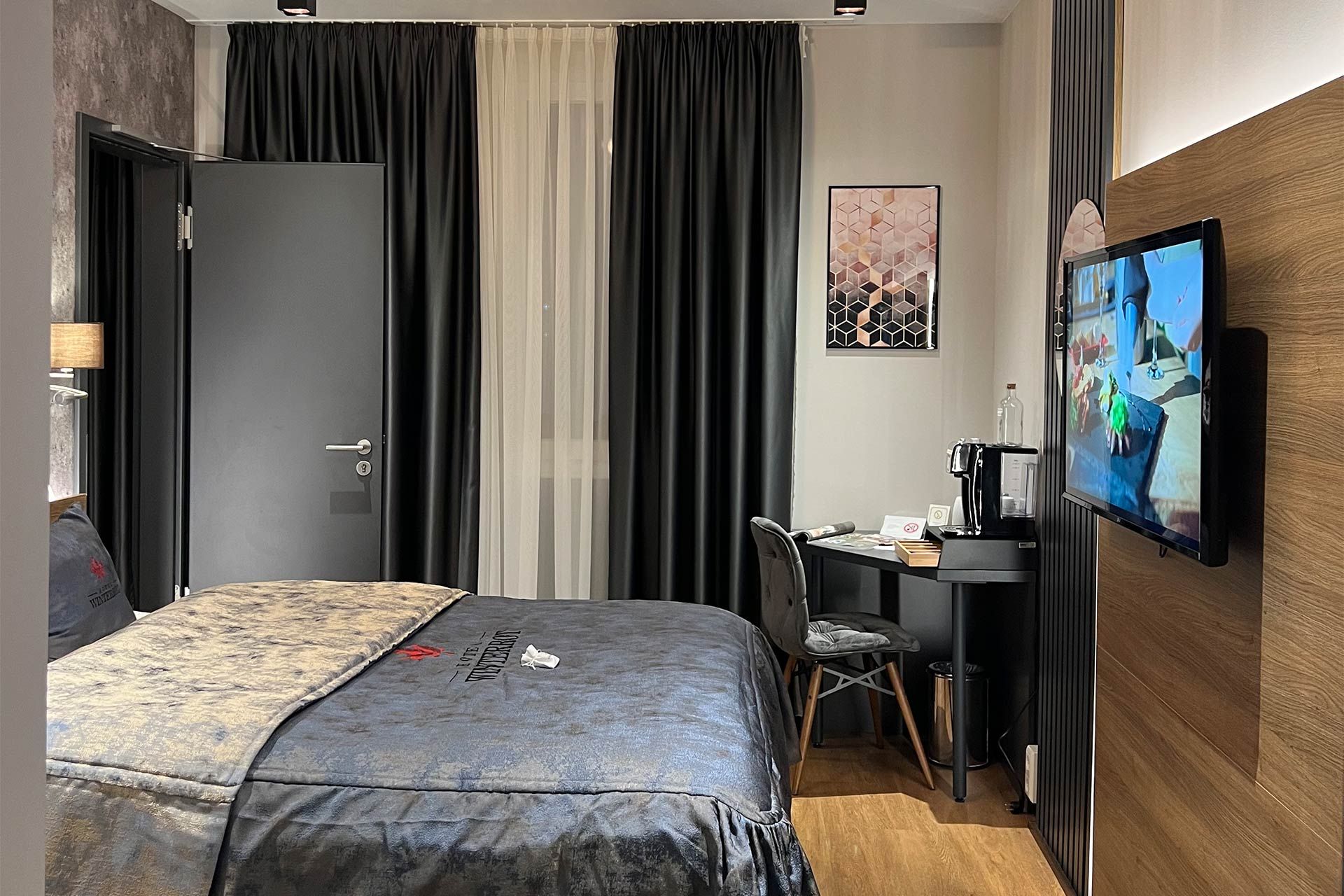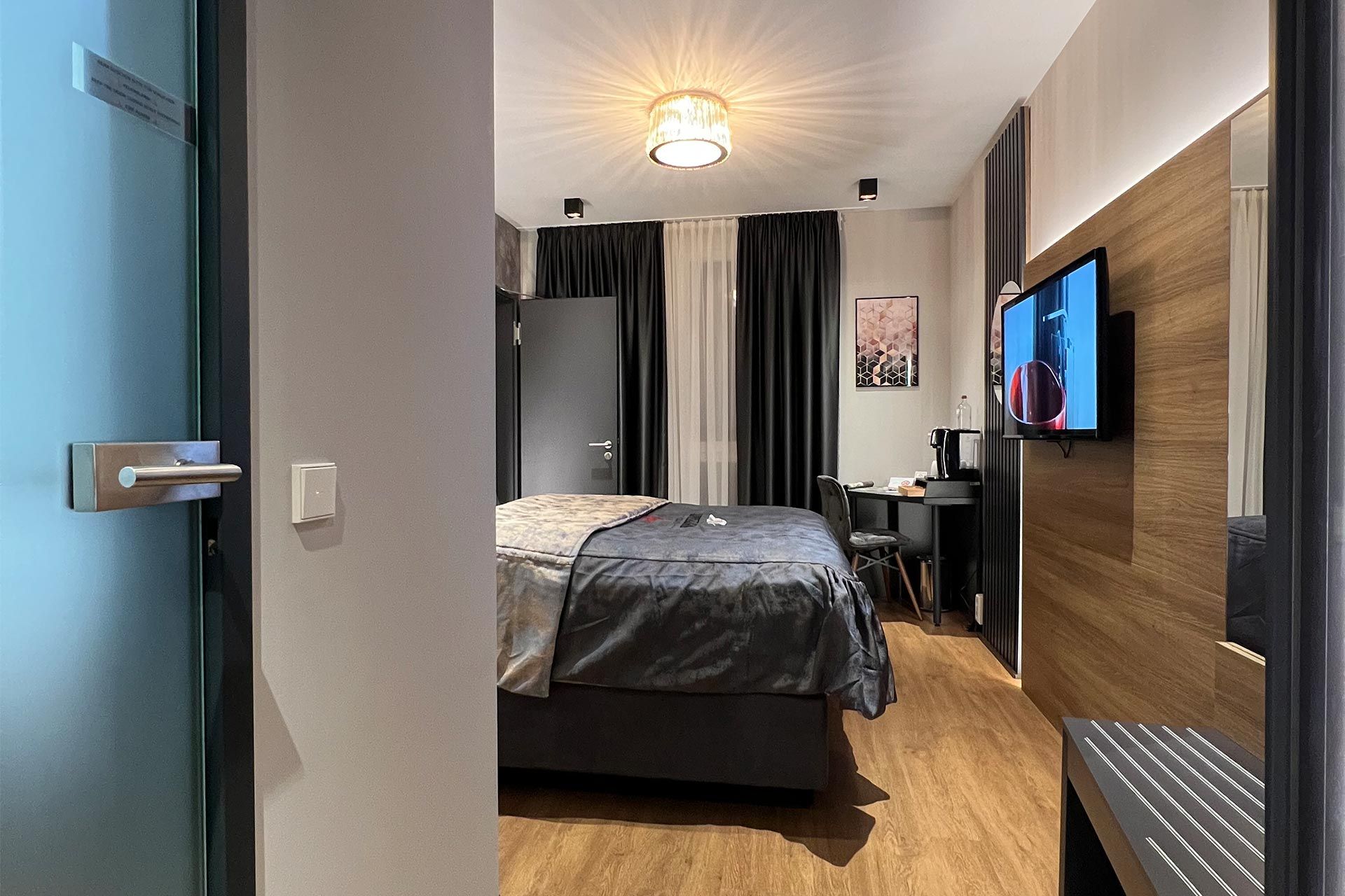 Im modernen Badezimmer erwarten Sie eine Regendusche sowie vegane Bio-Pflegeprodukte (Shampoo & Duschgel). Ein Zimmer, das Design, Komfort und Funktionalität auf elegante Weise vereint – für Ihren perfekten Aufenthalt.