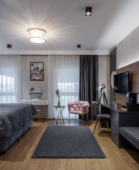 Für alle, die nicht auf Design verzichten wollen, wenn die Familie mitreist: Unser Familienzimmer kombiniert zwei miteinander verbundene Räume mit Kingsize- und Queensize-Betten auf insgesamt 43 m². Perfekt für Familien mit Kindern, aber auch für Freundesgruppen, die gemeinsam reisen. Jeder hat Platz, aber niemand ist weit entfernt.