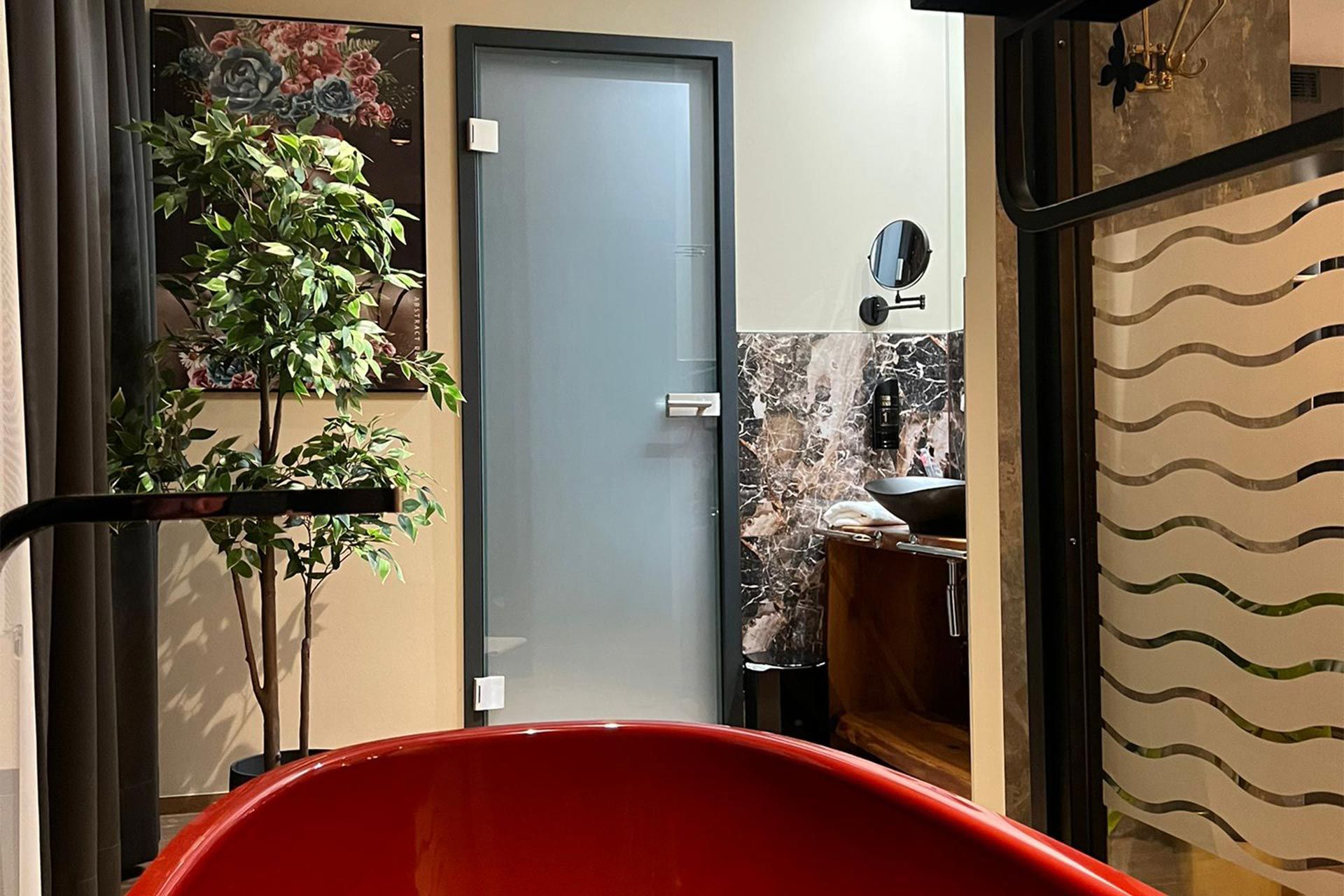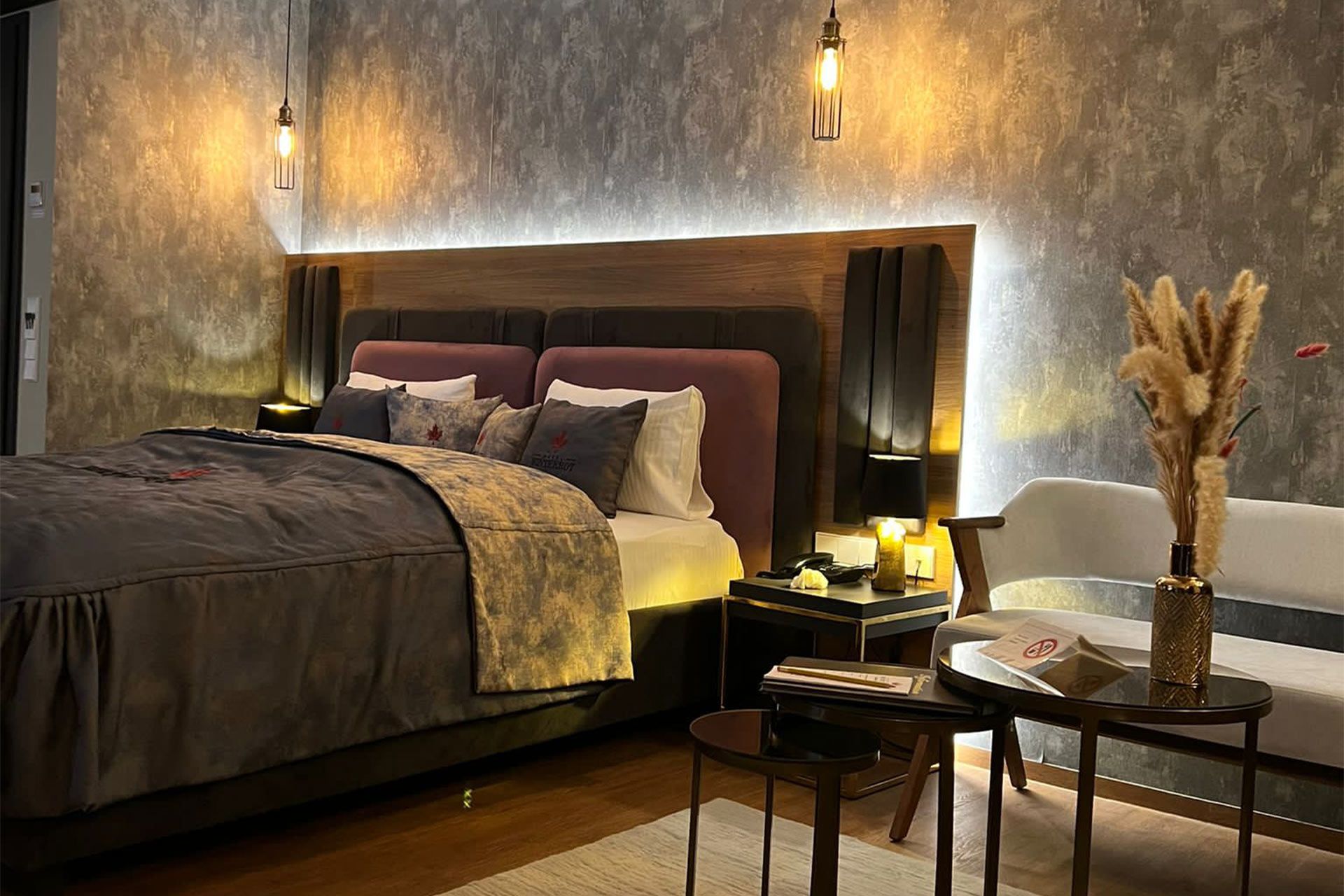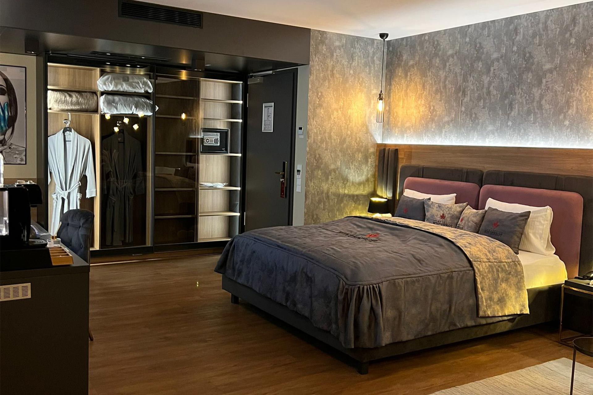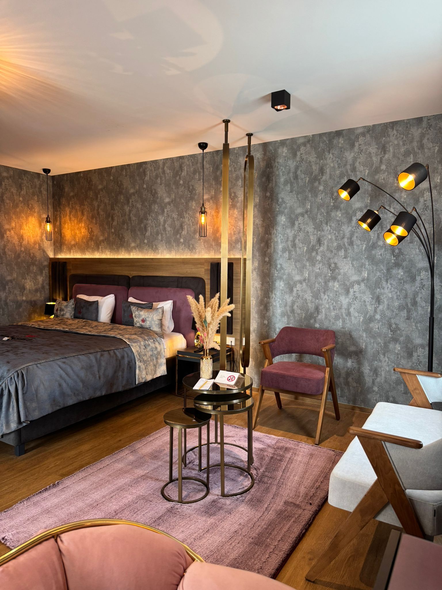 Unsere VIP Platin Zimmer sind das Aushängeschild des Hauses: 45 m² pure Eleganz, ausgesuchte Materialien, ein Ambiente wie im Designmagazin. Erleben Sie einen Aufenthalt, der durchdacht, ruhig und luxuriös zugleich ist. Die Kombination aus freistehender Badewanne, großzügigem Bad, Kingsize-Bett und separatem Wohnbereich schafft ein echtes Suite-Gefühl.